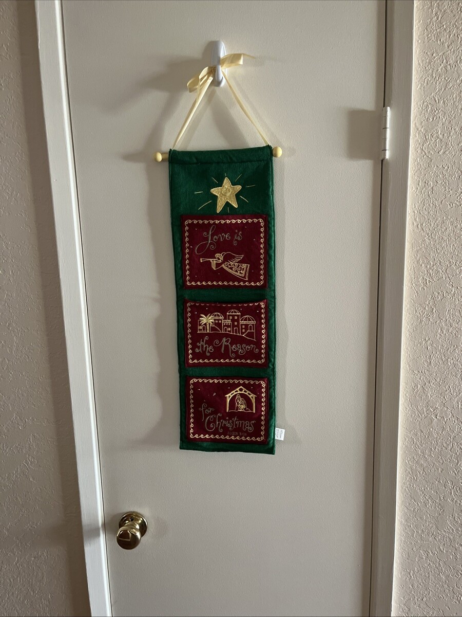 2008 Christmas Wall Hanging Card Holder Felt 3 Pockets Embroidered John 3:16