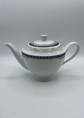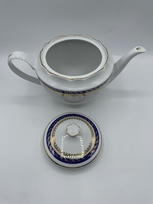 Cmielow Poland Big Coffee Pot Tea Pot White blue Gold Hand Painted Filigree