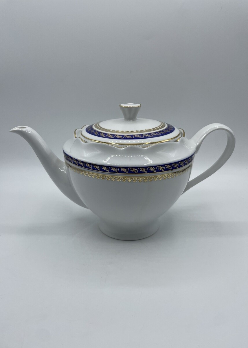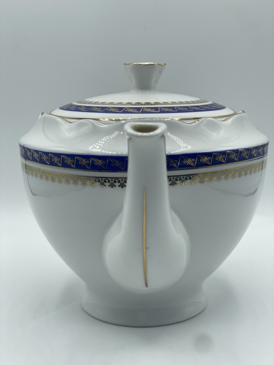 Cmielow Poland Big Coffee Pot Tea Pot White blue Gold Hand Painted Filigree Bs308