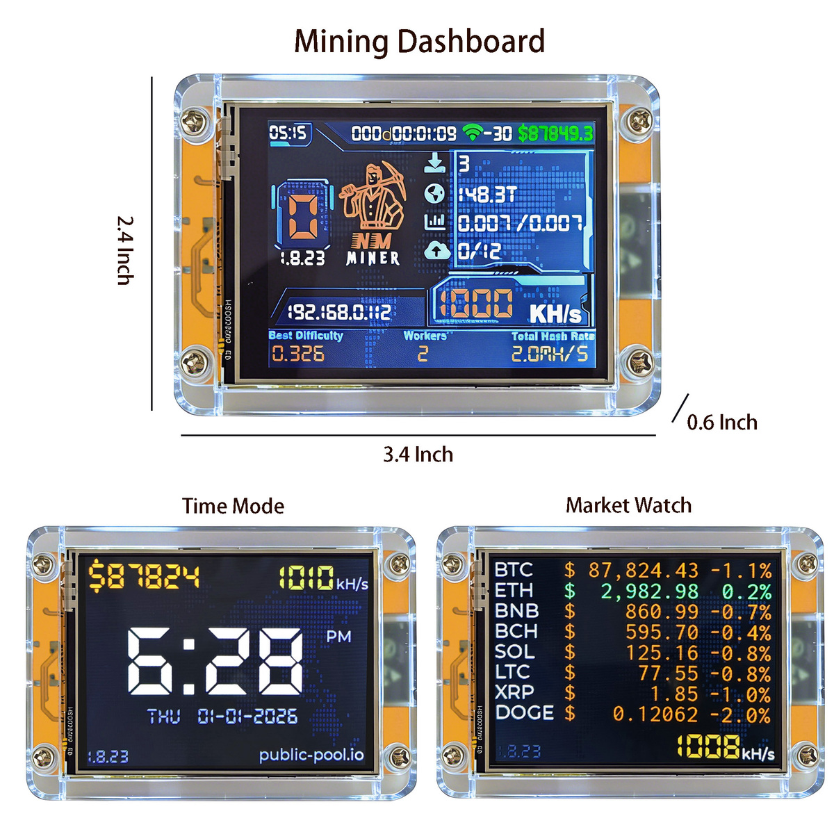 Experience blockchain technology firsthand with the ESP32 Smart Mining Educator. This compact Bitcoin lottery miner features 2.4G WiFi connectivity, a built-in screen, and ultra-low power operation, making it the perfect tool for beginners, educators, and crypto enthusiasts to learn mining principles in a real-world setting.