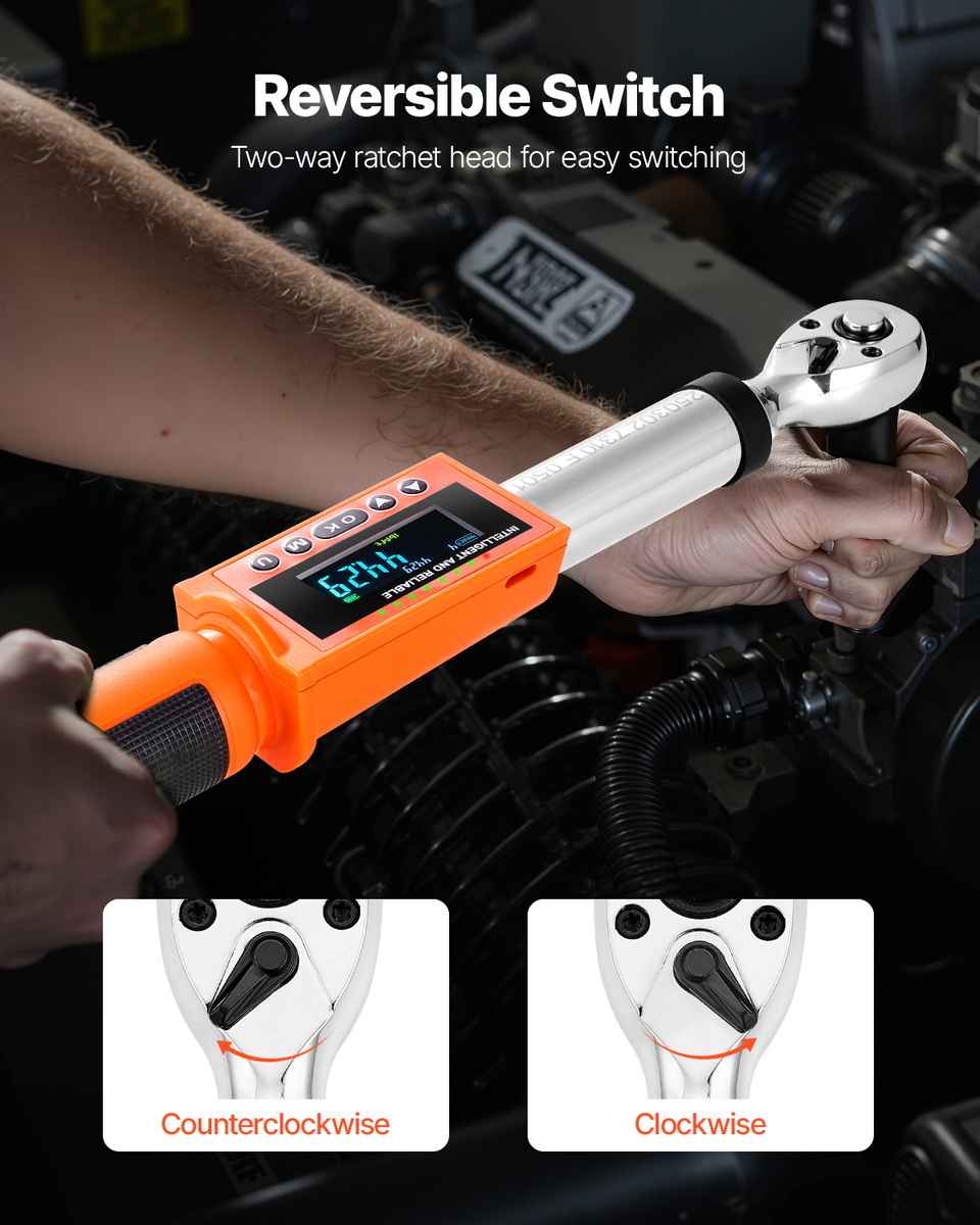 VEVOR Digital Torque Wrench, 3/8" Drive, 0-99.57 lbf-ft / 0-135 N.m, 72-Tooth
