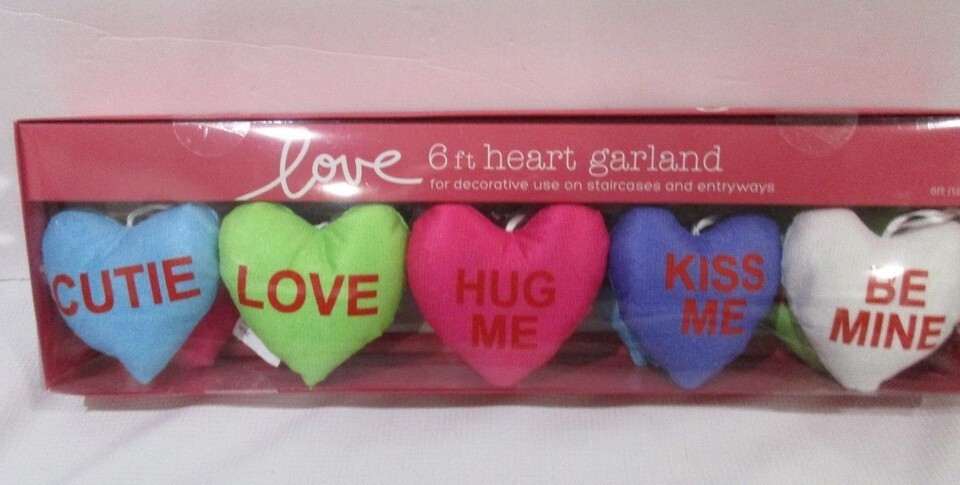 Up for sale is this adorable 6FT garland to add to your Valentines Decor. Garland is soo cute the hearts measure just a little under 4". Each heart has a different saying. Great for a staircase, Mantel or just about anywhere that would need this adorable garland. The garland will not come with box to be able to ship First Class in a much smaller box. Garland is new.