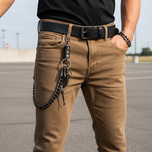AND CHAIN HAS LEATHER SNAP BELT LOOP ON OTHER END