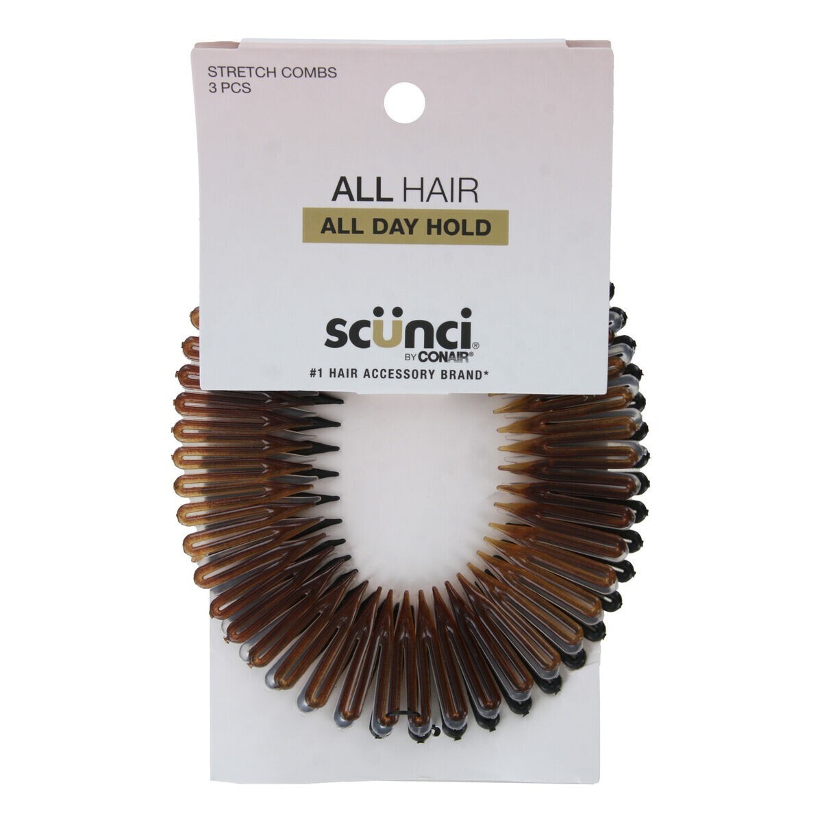Lot of 9 Scunci Effortless Beauty Stretch Hair Comb Assorted Colors