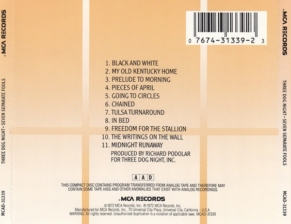 Three Dog Night – Seven Separate Fools cd - and 50 similar items