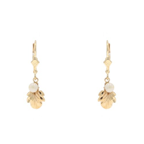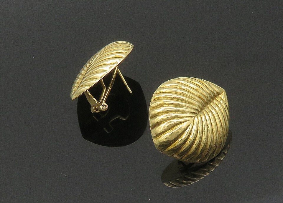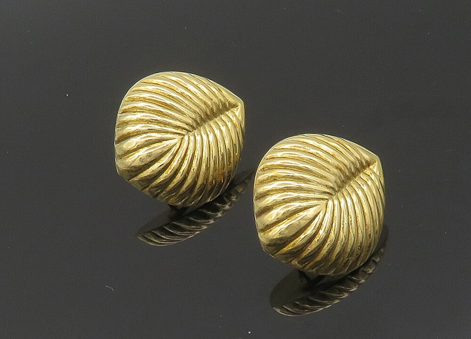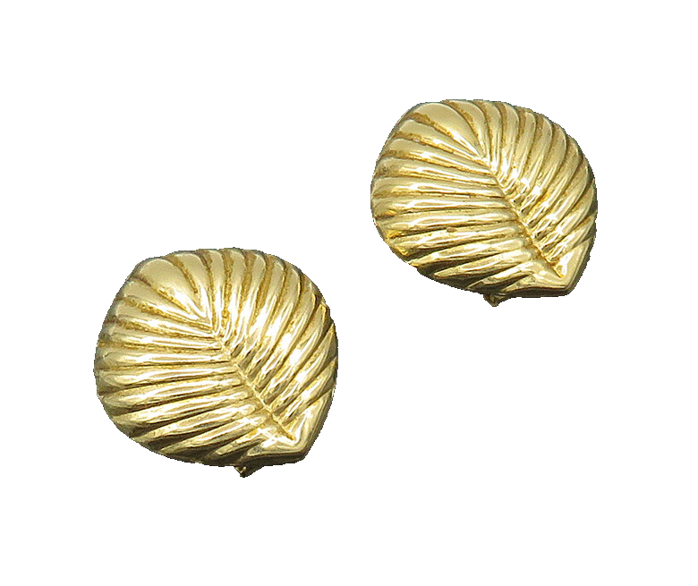 Authenticity Guarantee 14K GOLD Vintage Shiny Floral Leaf Motif Fluted Deta...