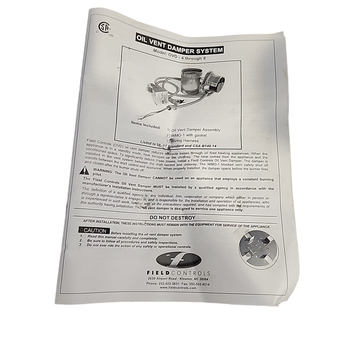 Keywords: Field Controls, Oil Vent Damper, OVD 4-8, HVAC, Heating System, Vent Damper, Energy Efficient, Furnace, Oil Furnace, HVAC Parts, Home Improvement, Residential HVAC, Industrial HVAC