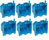 Two-gang old work outlet, volume 25 cubic inch, length 3-15/16 inch, width 3-1/8 inch, depth 2-3/4 inch, blue color, PVC material, mounting means mounting ears and two swing clamps.