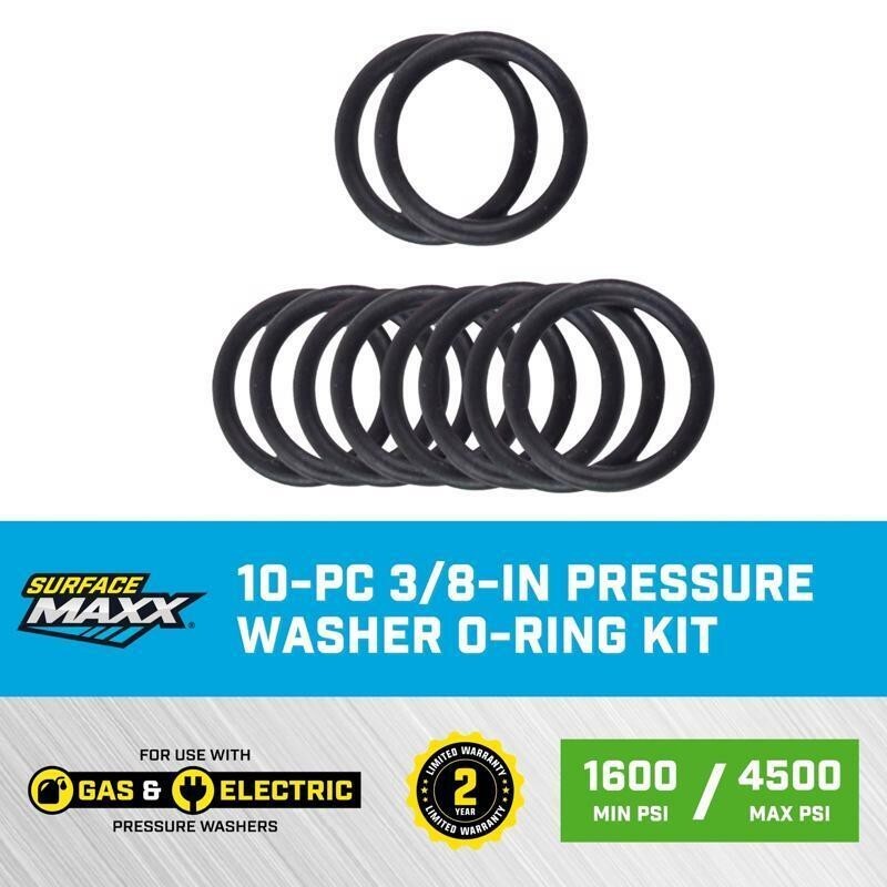 Is your pressure washer hose, spray gun, or extension wand leaking at the connection point? Do not replace the whole accessory--fix it fast with the SurfaceMaxx 10-Piece 3/8-in Pressure Washer O-Ring Kit. Designed to stop leaks and restore full cleaning power, this kit includes universal O-rings for various pressure washer fittings and accessories. Simply swap out a worn O-ring and get back to tackling tough grime. Compatible with gas and electric pressure washers, this kit keeps your equipment working like new.