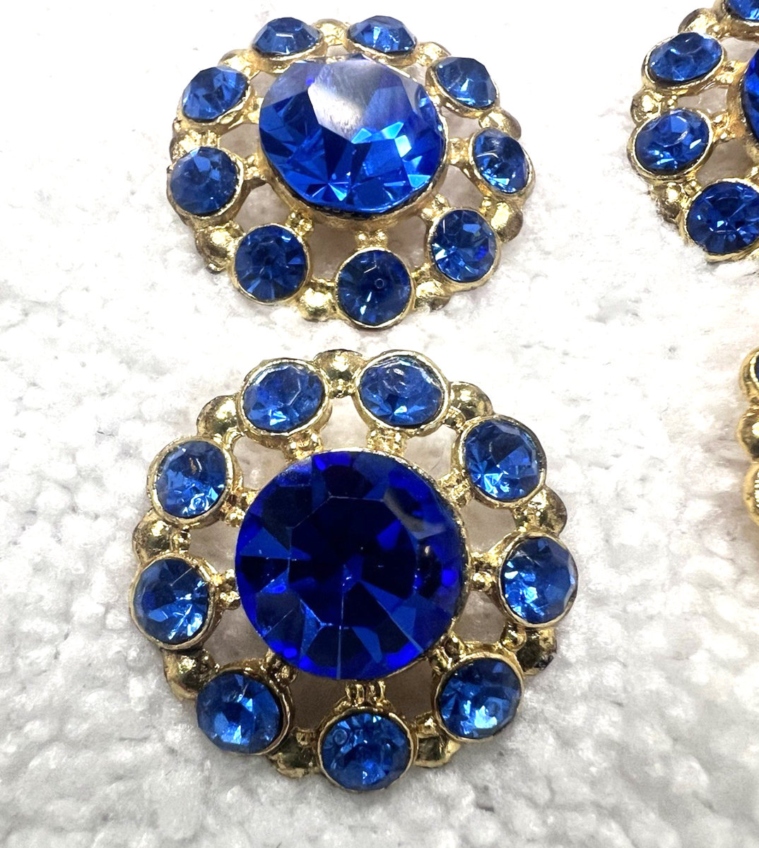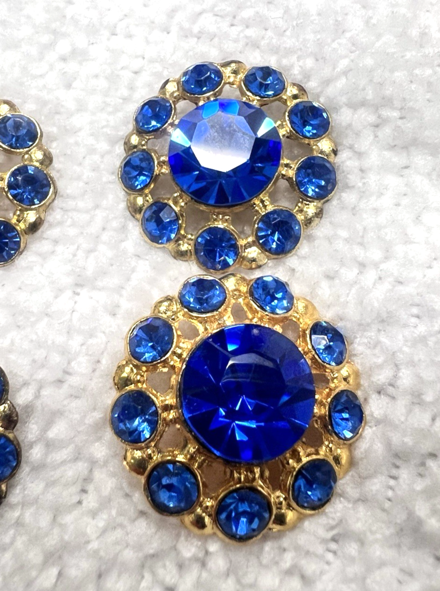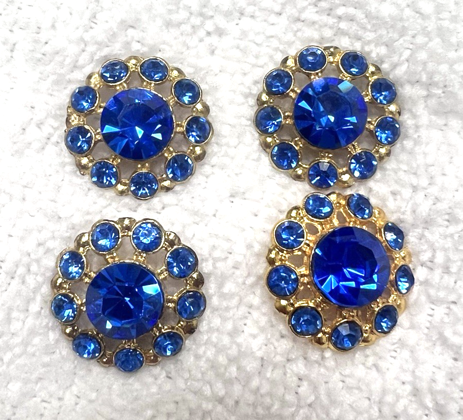 4 Cobalt Blue Set in Gold Tone Metal Rhinestone Buttons 7/8" Buttons no missing stones they are lovely