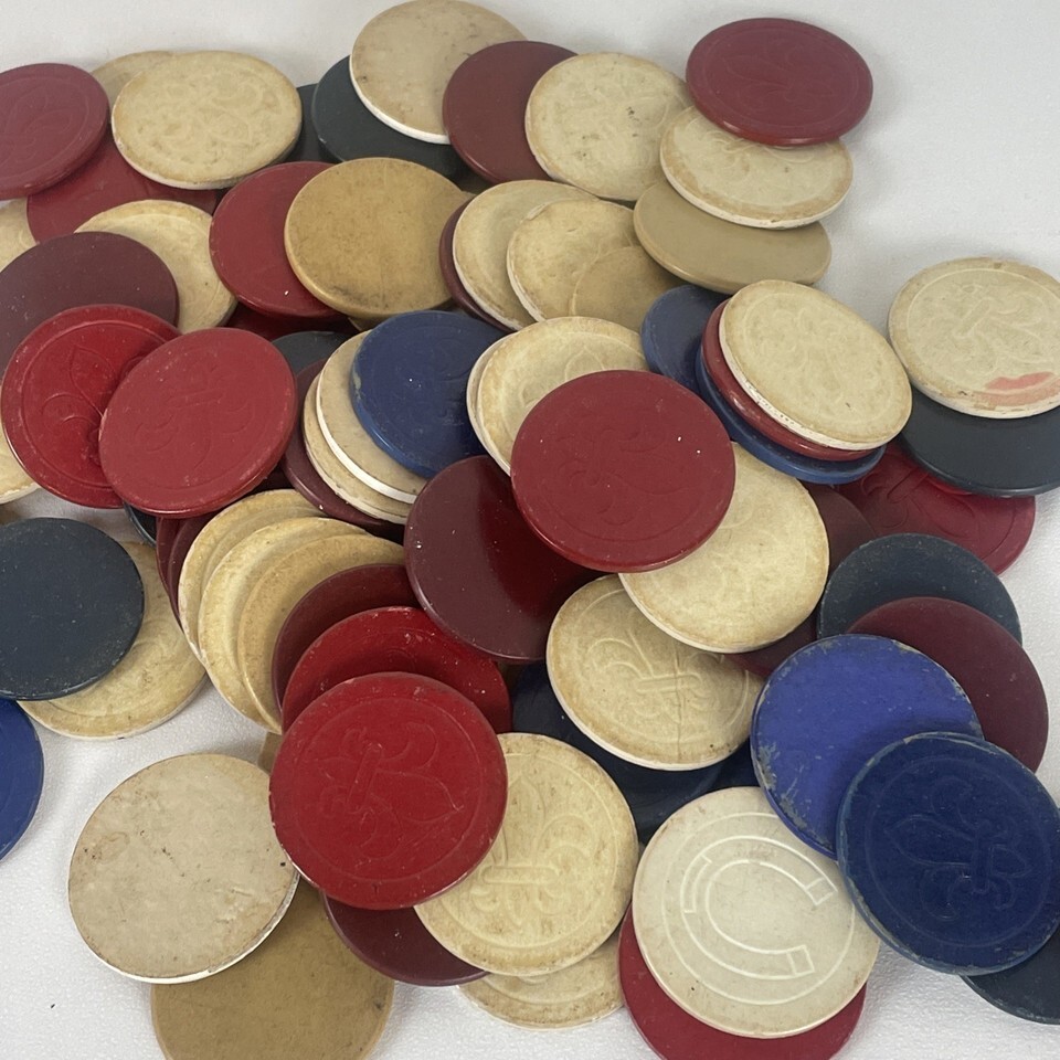 Vintage Red White Blue Van Dyke Embossed Paper Fleur De Lis Poker Chips 1.5" Lot