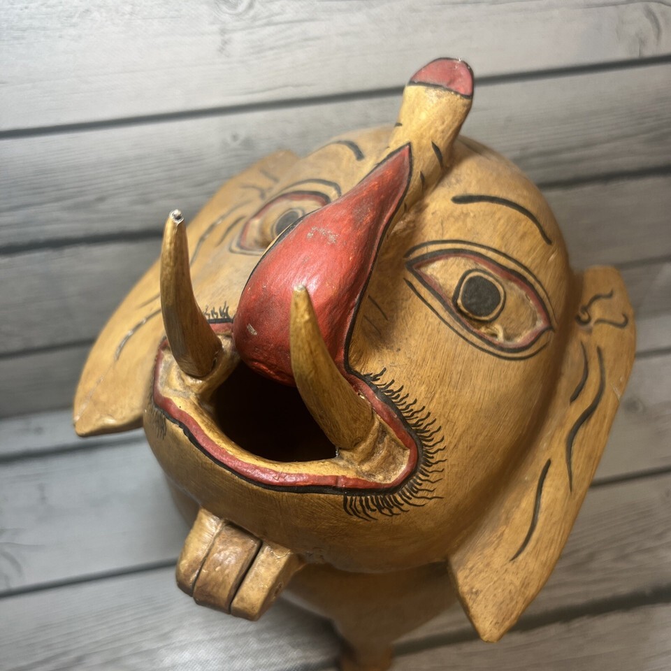 Vintage Tribal Elephant Mask - Hand-Carved Wooden Trinket Box Deco