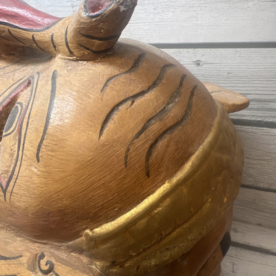 This Vintage Tribal Elephant Mask is a unique and authentic piece of art. Hand-carved. it features intricate details and unique design that showcases the rich culture and traditions. Made from high-quality wood, this mask is durable and perfect for use as a decorative piece in any home or office.