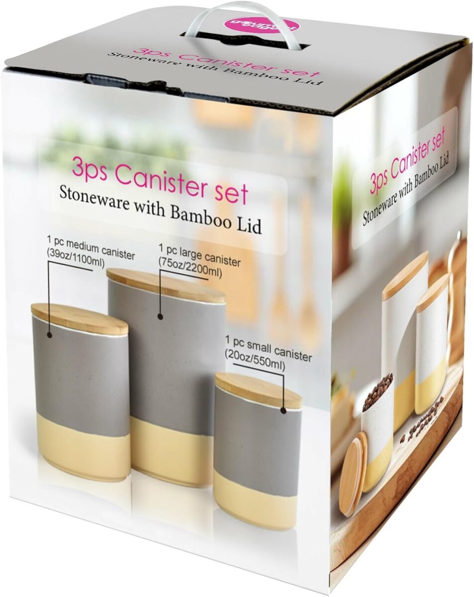 Ceramic Canister Set with Airtight Wood Lids and 50 similar items