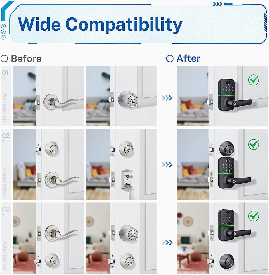 ??Multiple Ways To Access?Fingerprint + Passcode + App + Key Fob + Key + Alexa Voice Unlock(Wi-Fi Gateway Required) + Remote Unlock(Wi-Fi Gateway Required). Experience the convenience of multiple unlocking methods, provide friendly access options for children and the elderly.