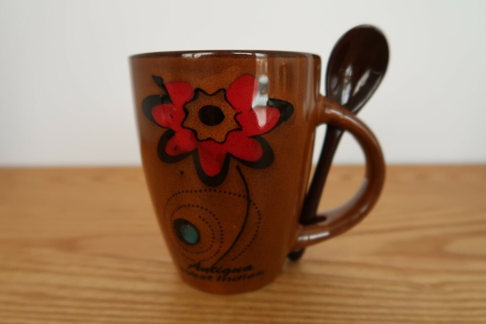 Antigua West Indies Coffee Tea Cocoa Cup Mug w/ Spoon Tropical Flower Agiftcorp