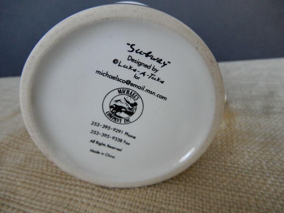 Seattle coffee mug cup "Subway" By Luke-a-Tuke Michaels Co. Inc. Yellow & red
