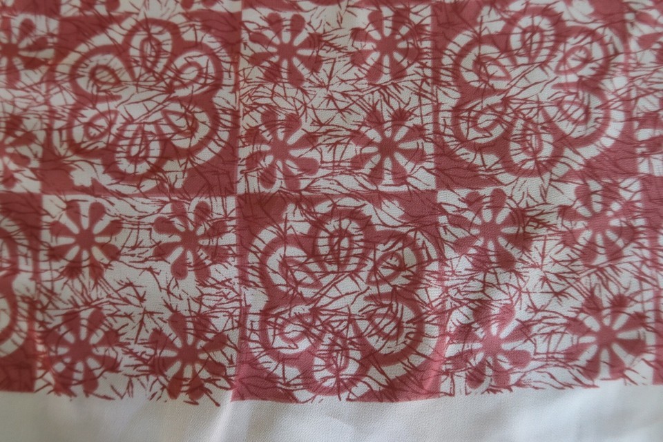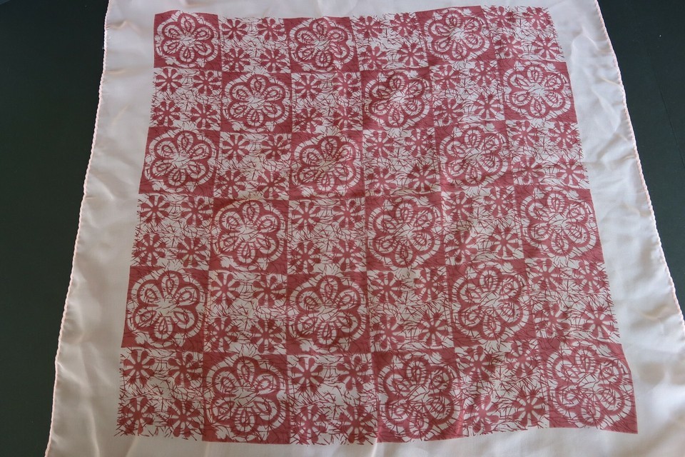 Vtg square ladies scarf with two tone pink stamped flower pattern design