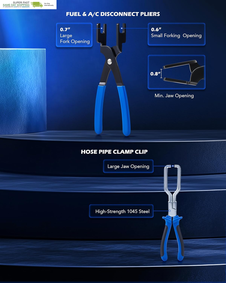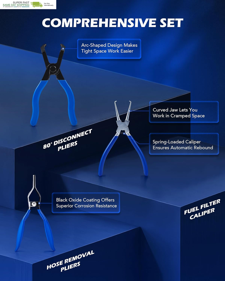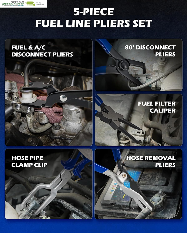 Durable Fuel Filter Caliper: Our 7.4 in. caliper features curved jaws for easy handling of fuel line connectors, including diesel leak connector. The spring-loaded design ensures automatic rebound for effortless, long-lasting use with every repair