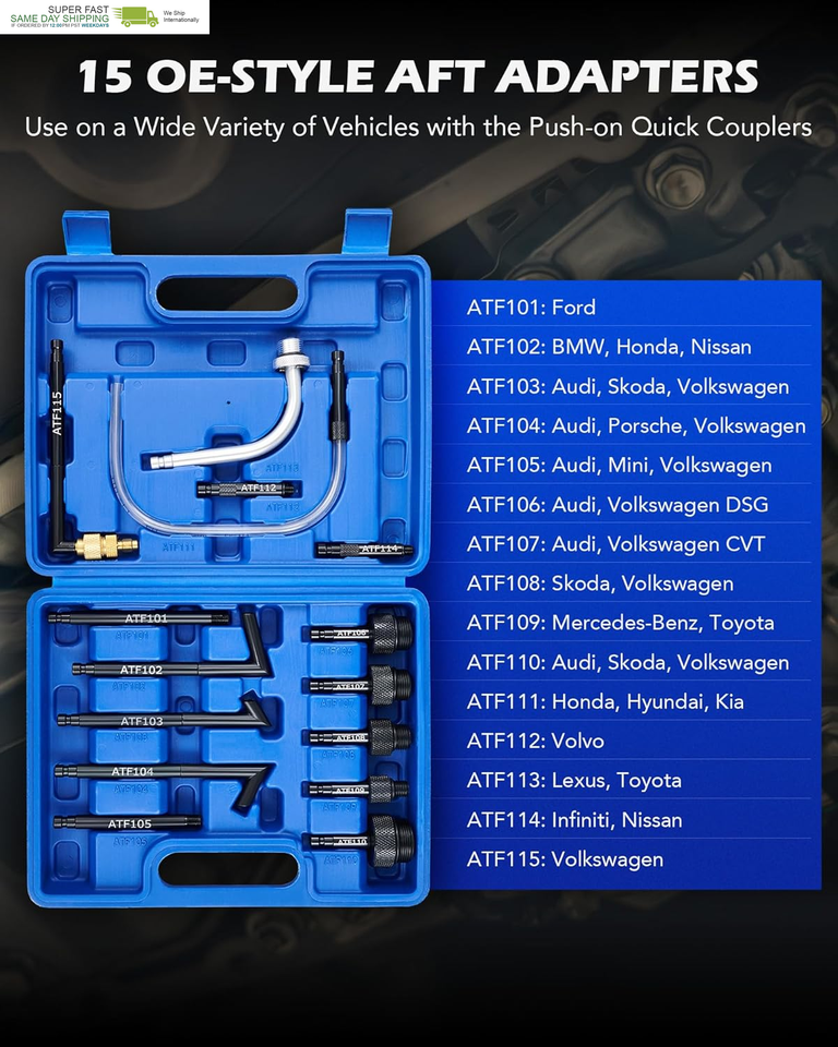 Universal Compatibility: Our transmission fluid bleeder set includes 15 ATF refill adapters to fit most master cylinders, with a tool case for easy storage and transport; the 1/4 NPT air control inlet connects to any standard air compressor quickly