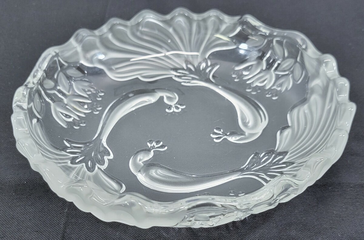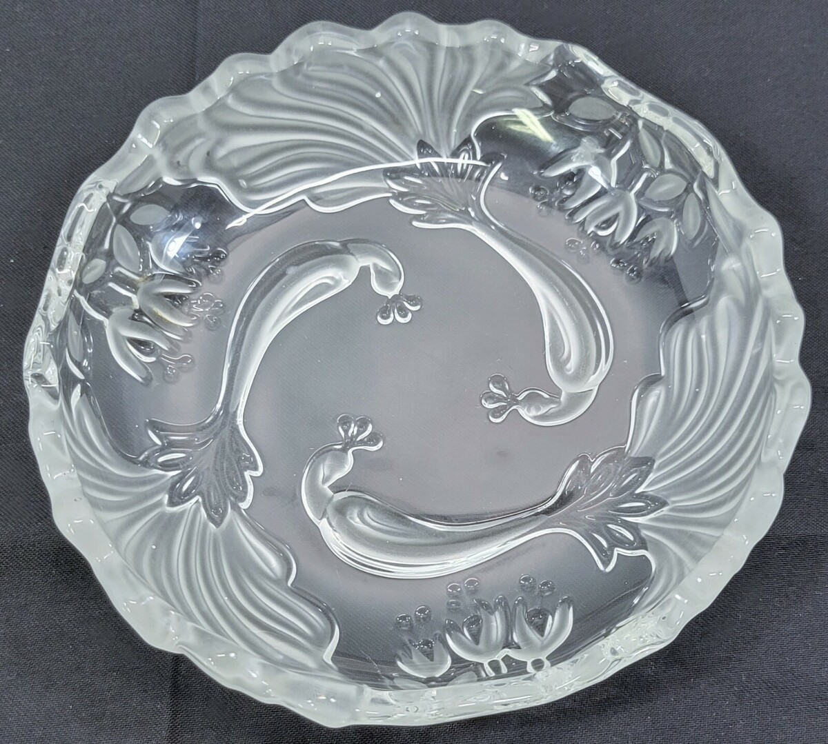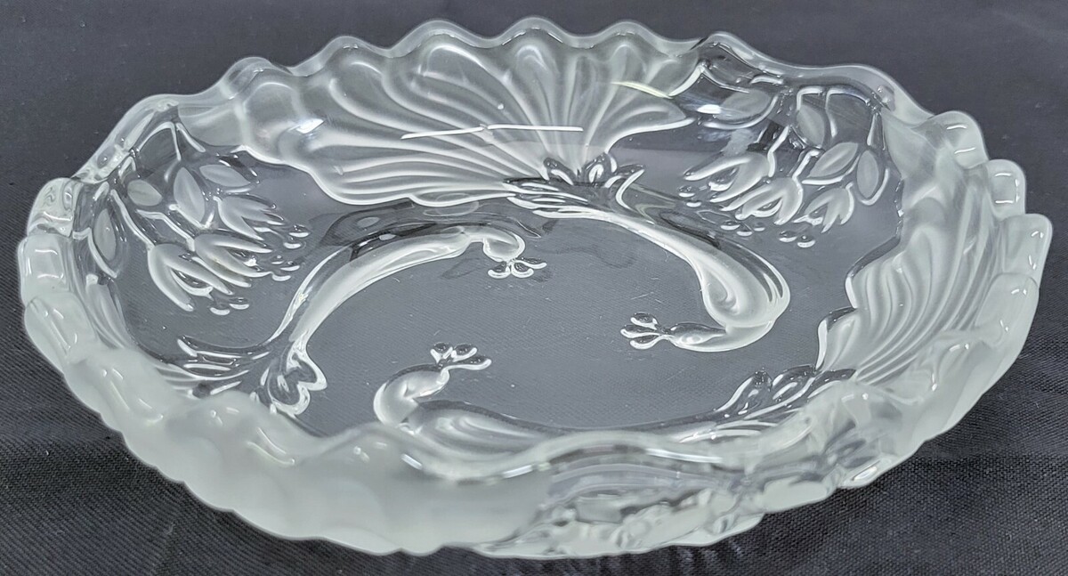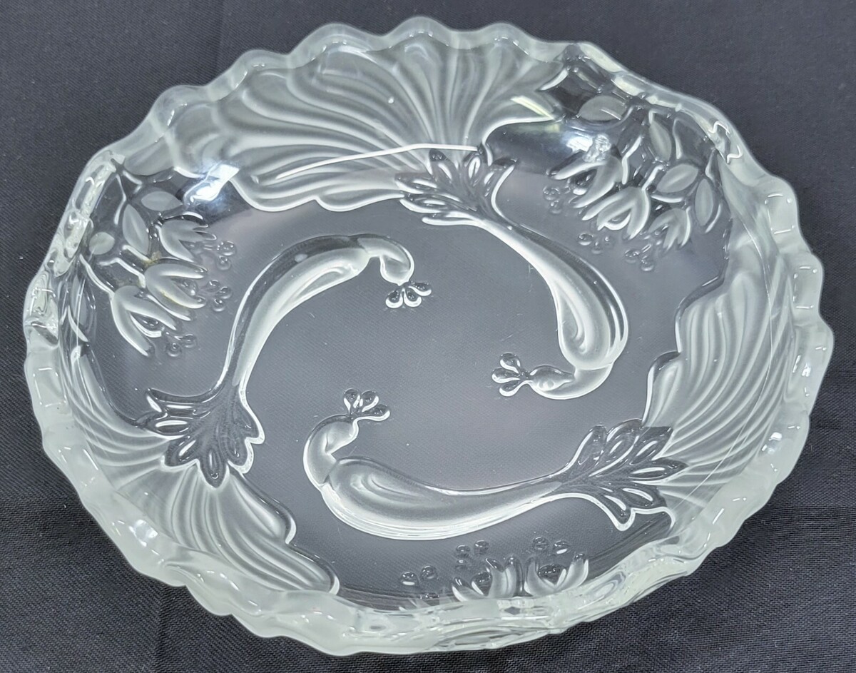 DD) Frosted Scalloped Floral Decorative Candy Dish Plate Bowl 7"