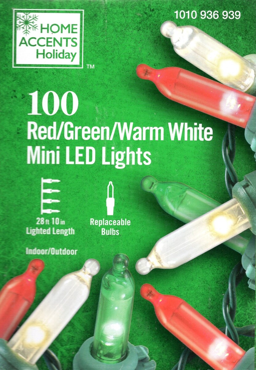 HOME ACCENTS HOLIDAY 1010 936 939 100CT RED & GREEN & WARM WHITE LED 28' - NEW!