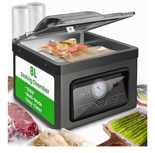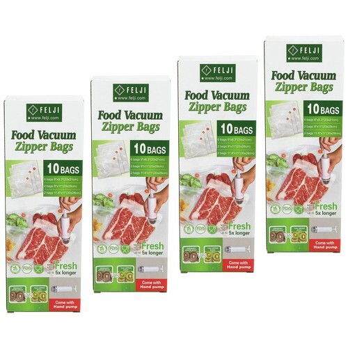 WHAT'S INCLUDED: (2) 11 inch Roll, (5) Pre-cut Quart Bags, (5) Pre-cut Gallon Vacuum Seal Bags, (10) Easy Fill 1 Quart Vacuum Sealer Bags, (5) Easy Fill 1 Gallon Vacuum Sealer Bags, (5) Vacuum Zipper Quart Bags, (5) Vacuum Zipper Gallon Bags, (1) Bottle Stopper, (1) 5-Cup Container and Progress Indicator Light