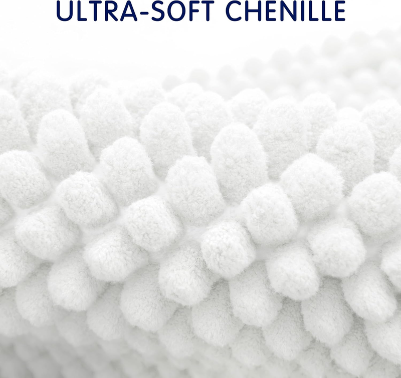 Bathroom Rugs Chenille Bath Rug Soft Short Plush Bath Mat Soft Shower Mat Water Absorbent Shower Mat Quick Dry Machine Washable(White,16" X 24")