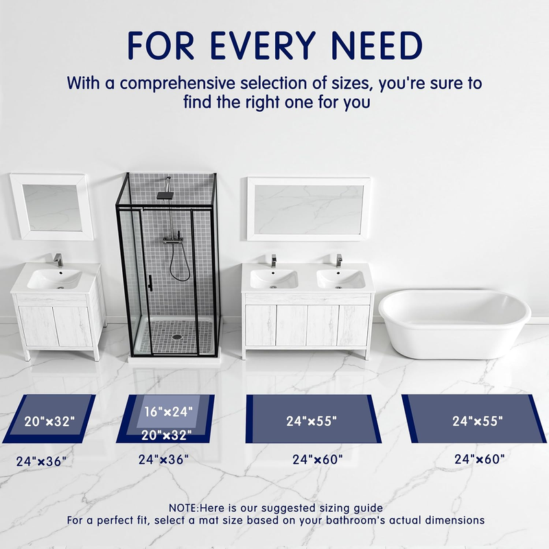 SIZE GUAIDANCE: Our size chart showcases suggested uses for each size. These mats work beyond bathrooms?try them as entryway, kitchen, or sofa covers. For best fit, measure your space before purchase.