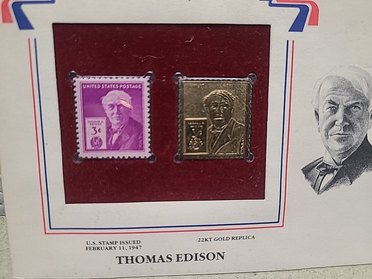 Thomas Edison 22K Gold Replica Stamp w 1947 and 50 similar items