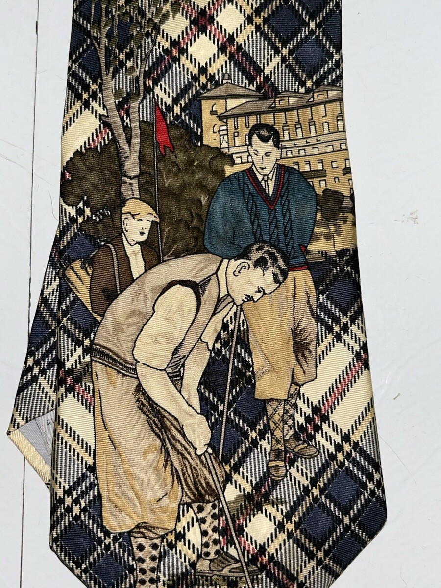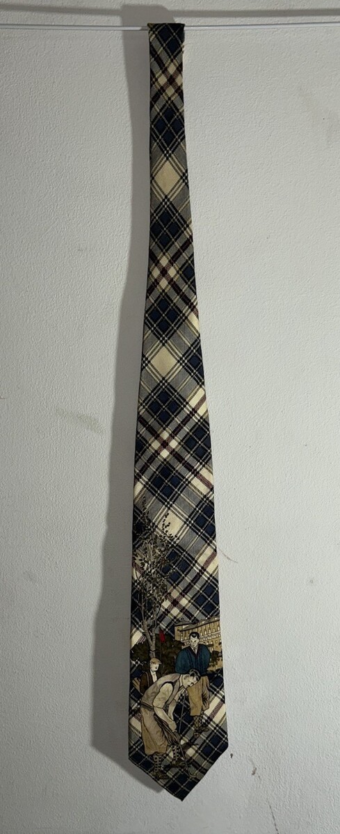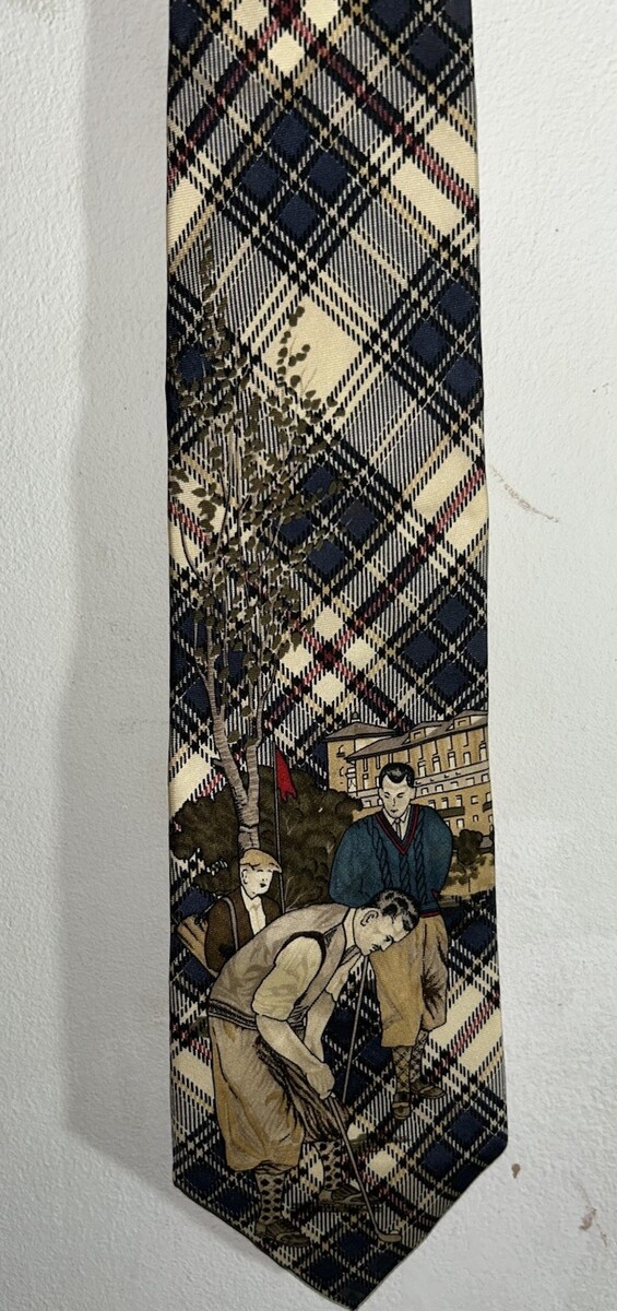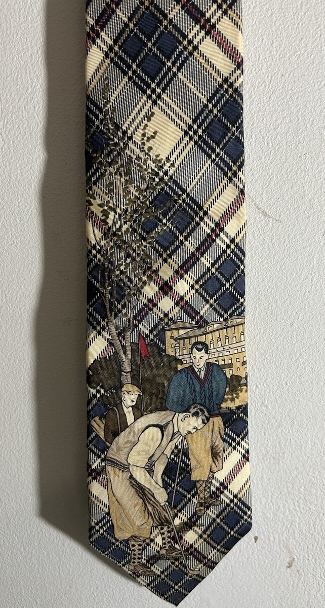 417 by Van Heusen Men's Neck Tie Old Time Golfers 100% Silk Vintage