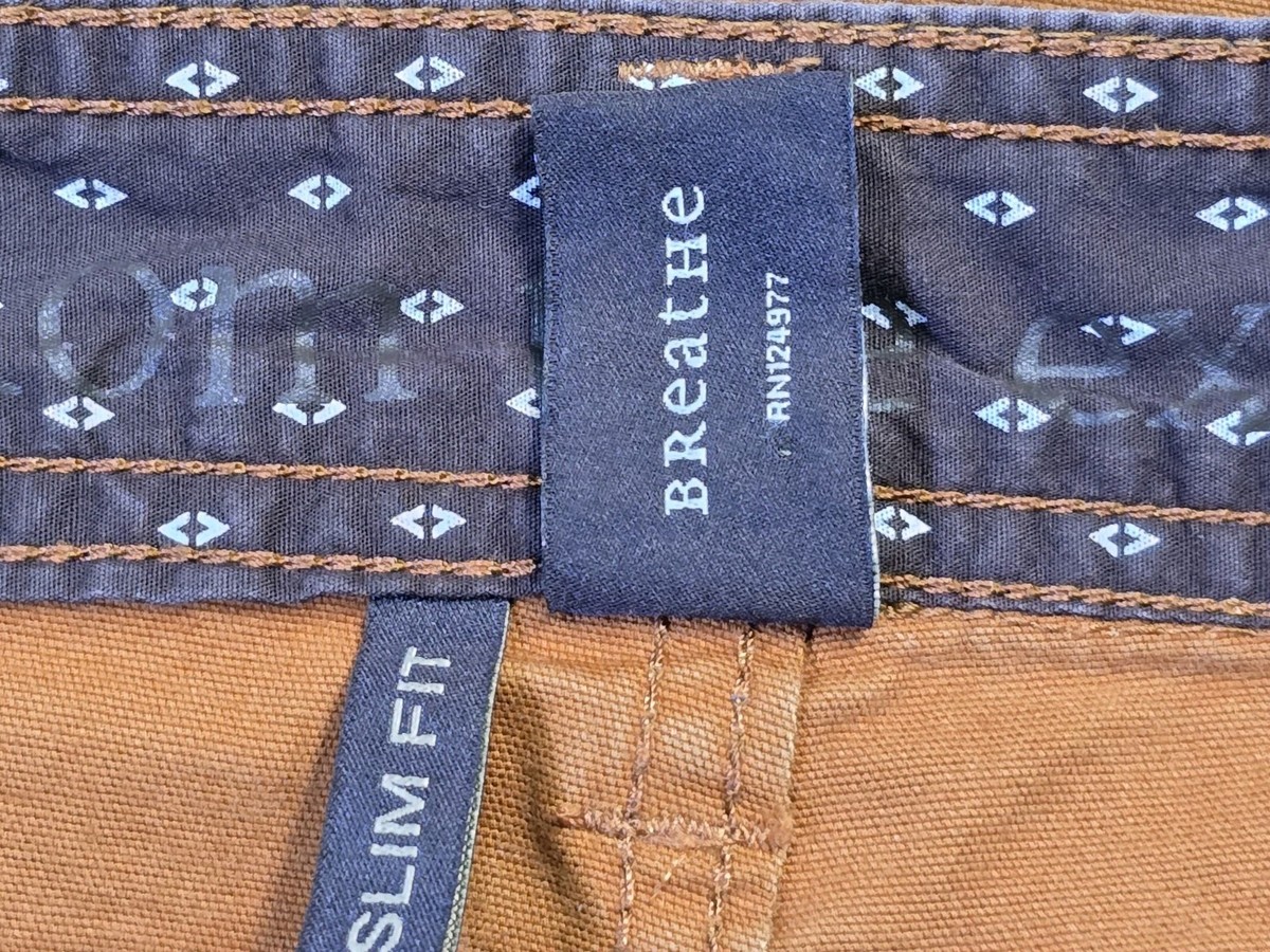 Prana Men's Brown Orange Slim Fit Workwear Hiking Pants 33x34 Organic Cotton