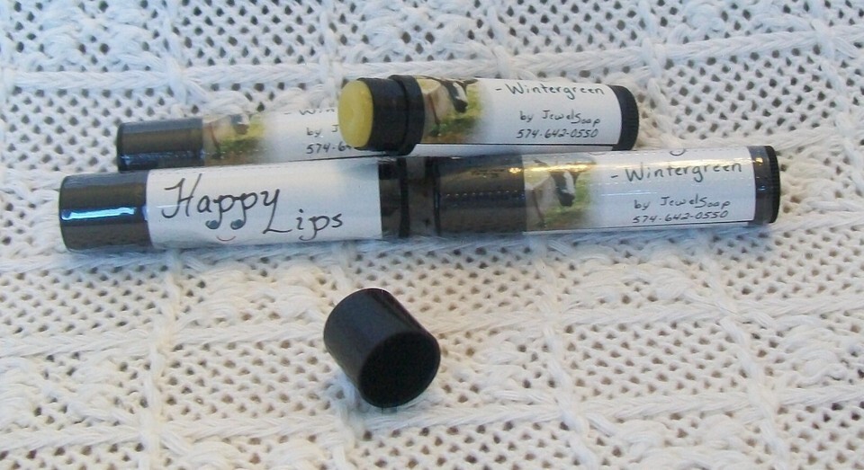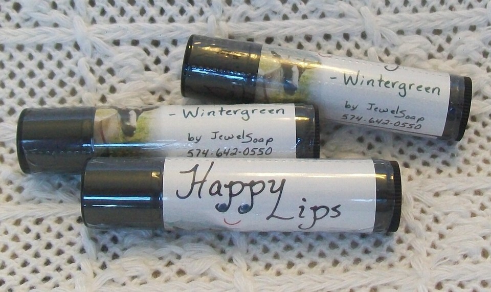 All Natural Lip Balm "Happy Lips" Wintergreen or Citrus, by Jewel Soap, Beeswax