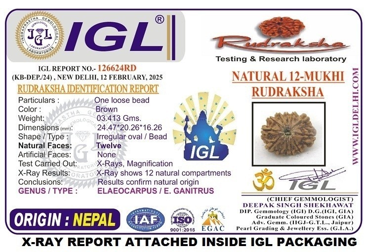 12 Mukhi rudraksha - 24.47 mm - Nepal - IGL Certified