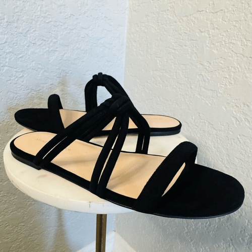 Stuart Weitzman Leather Slide Sandal Black Twist Knot, Designer Size 8, NWT