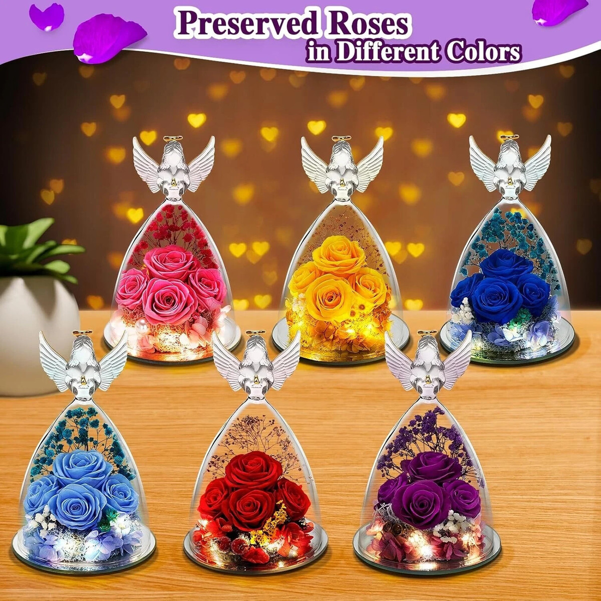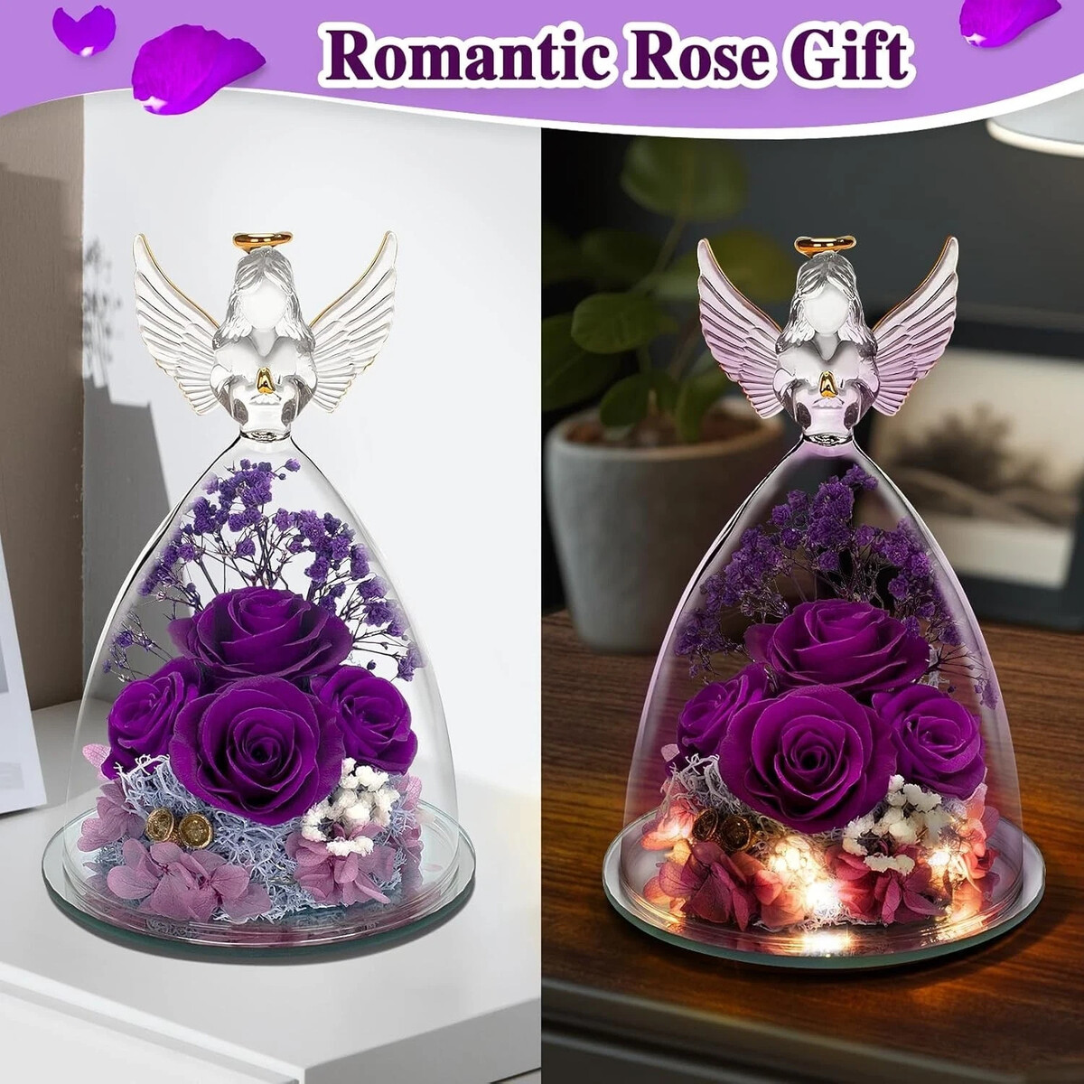 GMAOPHY Preserved Flower Purple Rose Glass Pretty Angel Figurine Gift Decor Idea