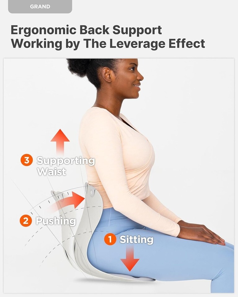GrandExtra Wide Sturdy ? Ergonomic Back and Lumbar Support for Good Posture Correction and Back Pain Relief, Perfect for Office, Floor Seat and Work from Home, Patented Grey