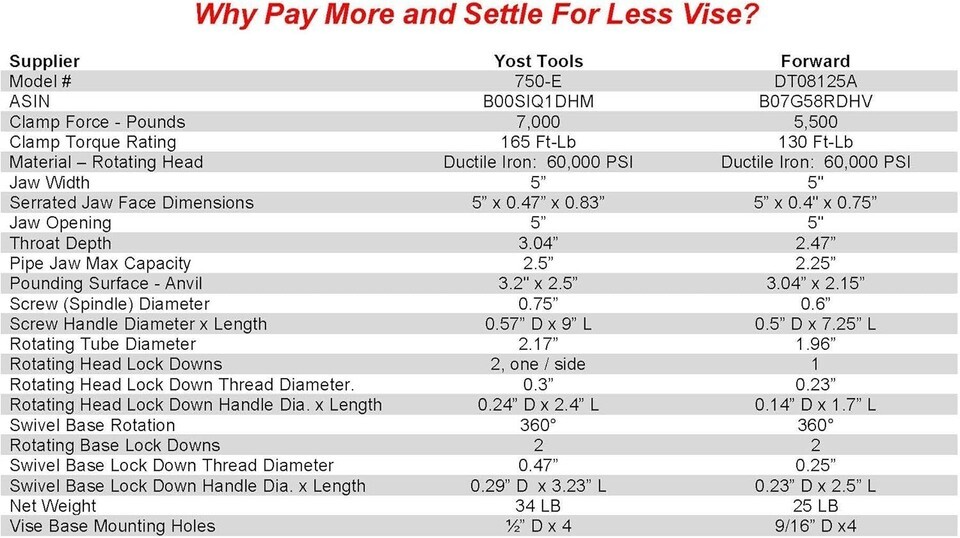 YOST VISES QUALITY: Every Yost Vises tool is engineered to have high standards of quality, strength, and durability. We value quality over quantity and manufacture products that are safe and easy to use. We offer tech support to back our quality SATISFACTION GUARANTEE.