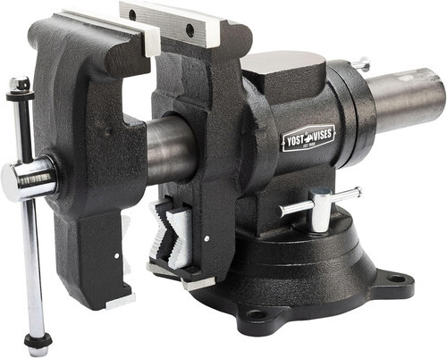 This Medium duty ductile iron casted vise has a dual jaw system. The Vise head can rotate 360 degrees as well as the base with dual lockdowns for the versatility of positions while working on a project. Yost Vises has been producing high-quality vises and vise accessories since 1908. We supply our products to both large distributors and individual craftsmen throughout the world ranging from industrial-grade vises, professional-grade vises, workshop-grade vises, light to heavy-duty vises, multifunction vises, welding vises, etc. Our products meet or exceed the Industrial Standard of Federal Specification GGG-V-410A, providing consumers with quality products that last for s at a great price.
