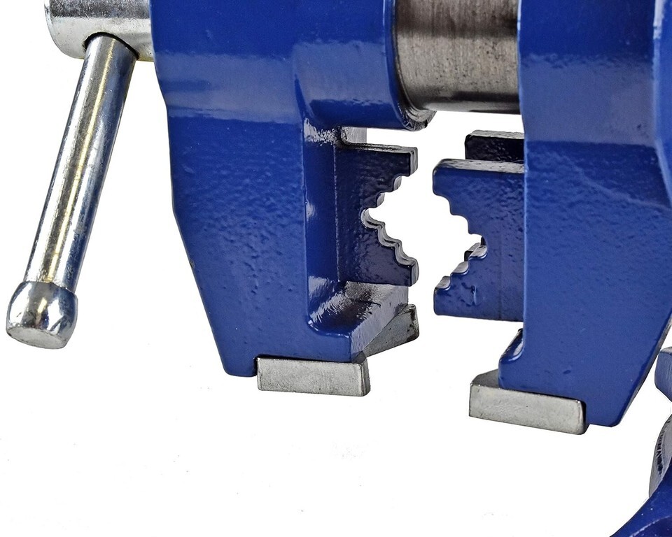 SWIVEL BASE AND VISE HEAD: 360 Degree rotatable swivel base with dual lockdowns. Head of vise rotates a full 360 degrees.