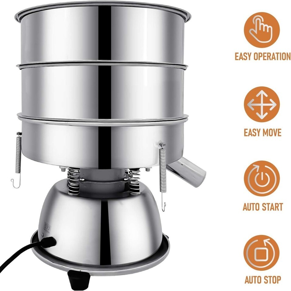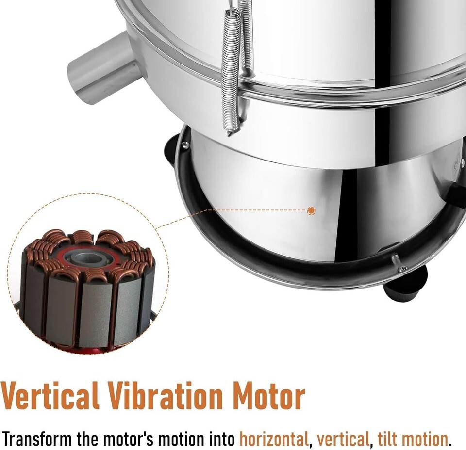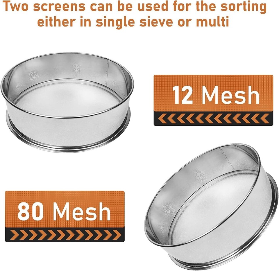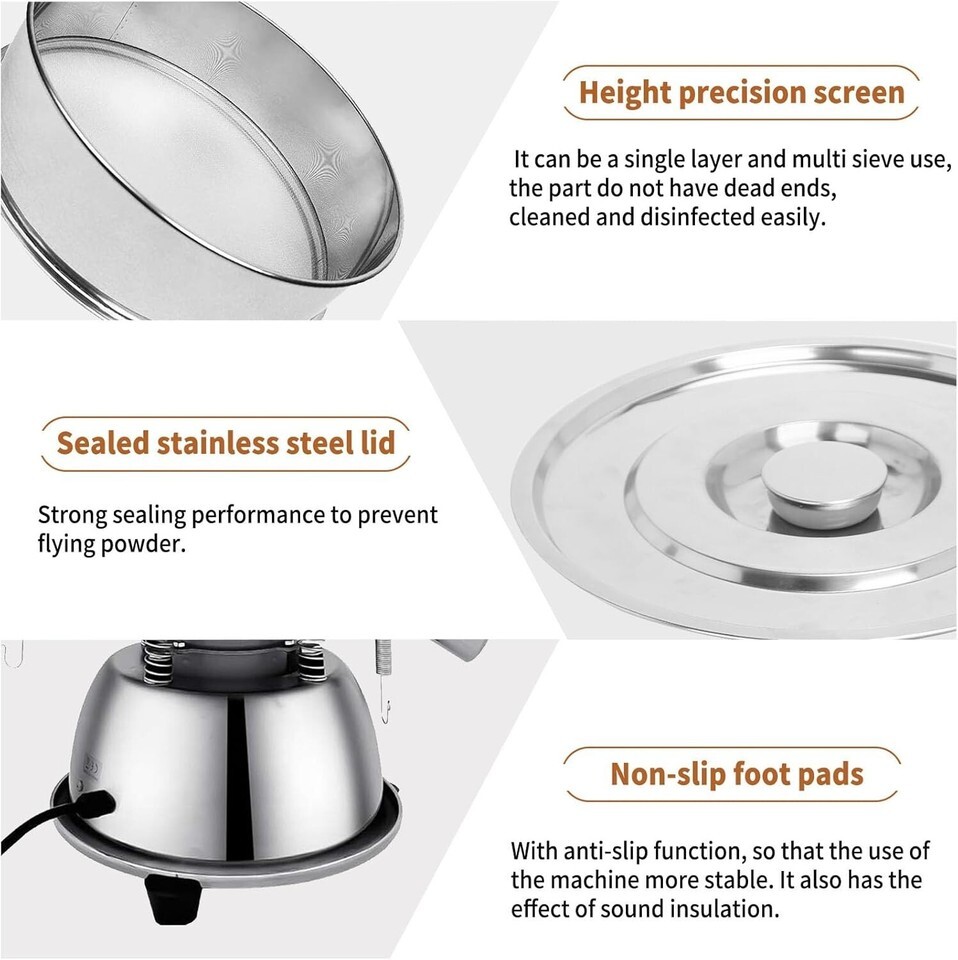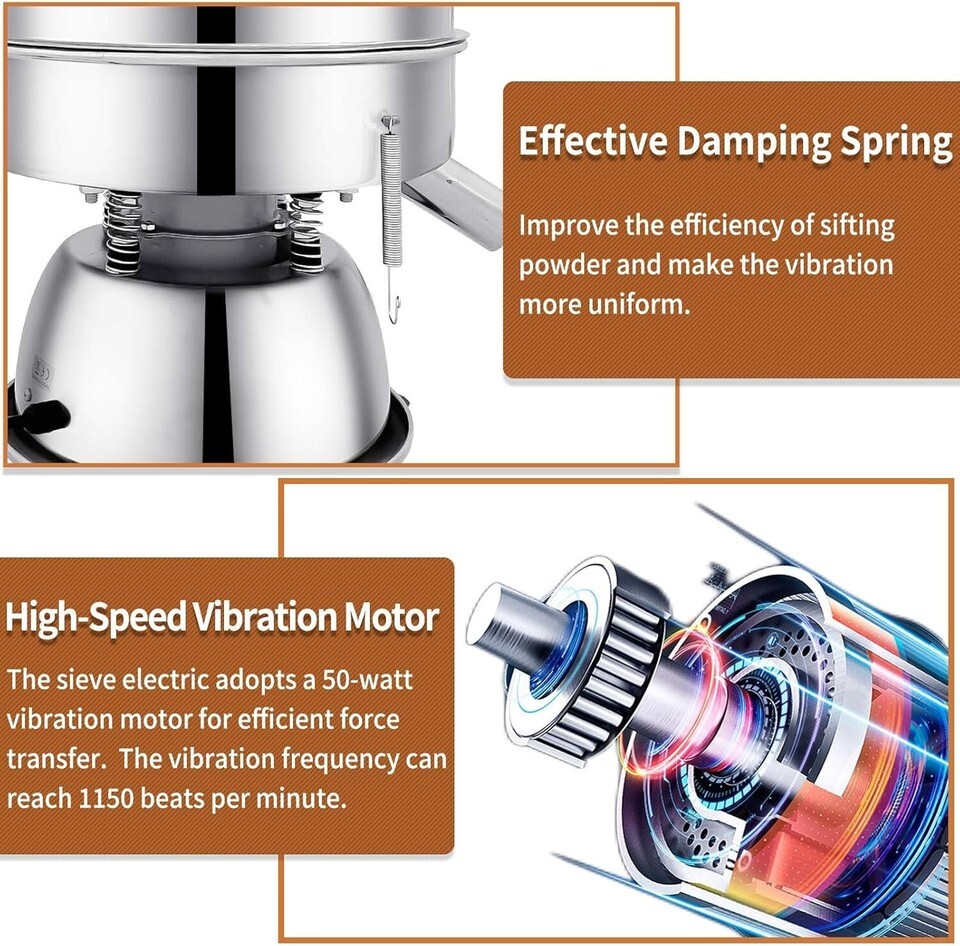 Two Stainless Steel Screens: The screen is made of stainless steel mesh stainless steel screens of different sizes(10 mesh,60 mesh) are given to you. It can be a single layer and multi sieve use, the part do not have dead ends, cleaned and disinfected Powder Sifter Machine can only use one screen at a time, not two screens at the same time)
