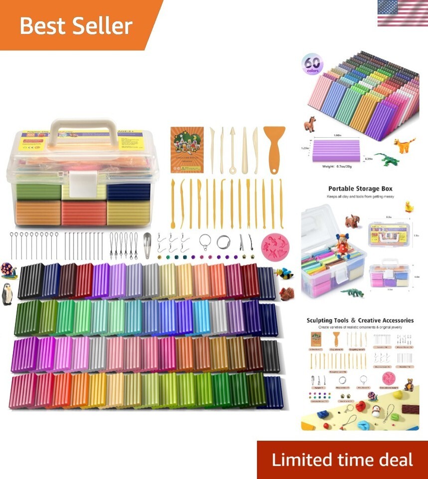 Polymer Clay 60 Colors, Modeling Clay for Kids DIY Starter Kits, Oven Baked Model Clay, Non-Sticky,with Sculpting Tools, Holiday Gift for Children and Artists.