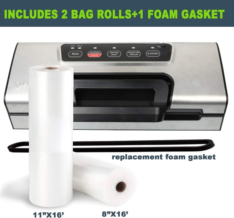 ALL-INCLUSIVE VERSATILE MODEL: This all-inclusive machine was designed with built-in bag storage and a cutter bar, an accessory port for sealing containers, jars, bottle stoppers, 2 bag rolls (11?x16? and 8?x16?), and an extra foam gasket for .