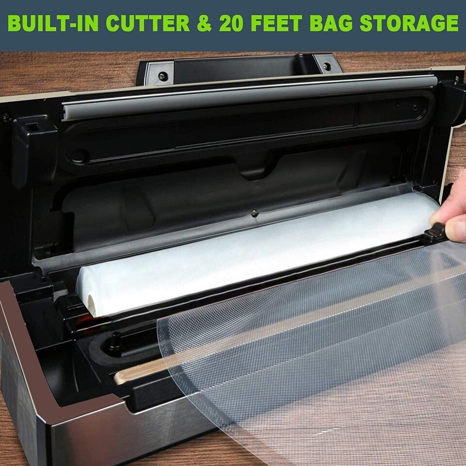 Precision Vacuum Machine,Pro Food Sealer with Built-in Cutter and Bag StorageUp to 20 Feet Length, Both Auto Manual Options,2 Modes,Includes 2 Bag Rolls 11?x16? and 8?x16?,Compact Design