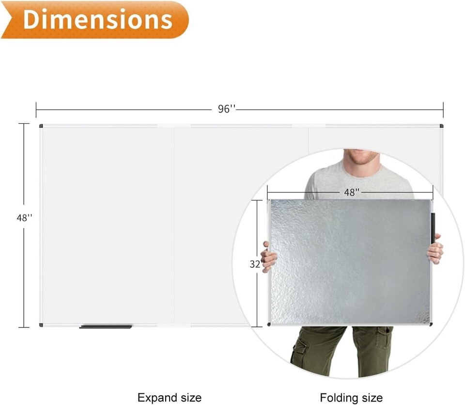 Large Magnetic Whiteboard/Foldable Dry Erase Board, 96 X 48 Inches, Wall Mounted White Board for School Office and Home 8' x 4'
