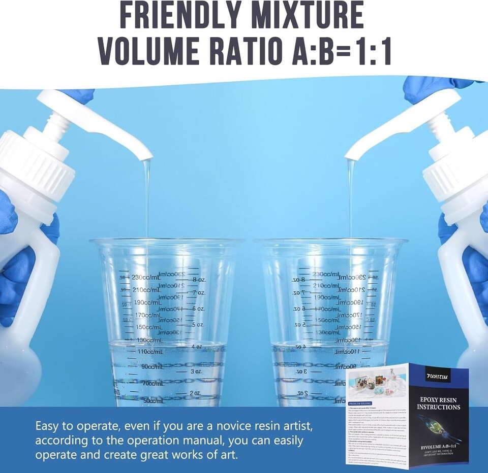 Easy to Use Fast Curing: Mix resin and curing agent in a 1:1 volume ratio. Enjoy a generous working time of 45 minutes to create vibrant, eye-catching designs.