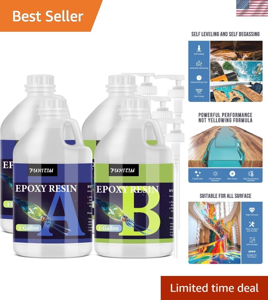 4 Gallon Crystal Clear Epoxy Resin Kit - Self-Leveling & Fast Curing for Crafts