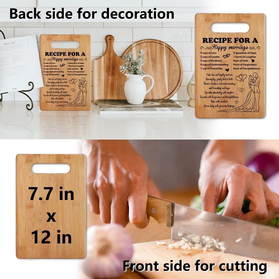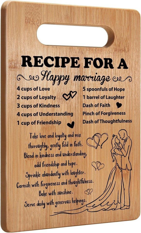 ?Best Marriage Anniversary Engagement Gift?The classic perfect gift for the strongest couple you know! This design features "Recipe for a Happy Marriage". Our cutting boards make a wonderful gift for newlyweds, wedding gift, engagement gift, anniversary, bridal shower, Valentine's day.