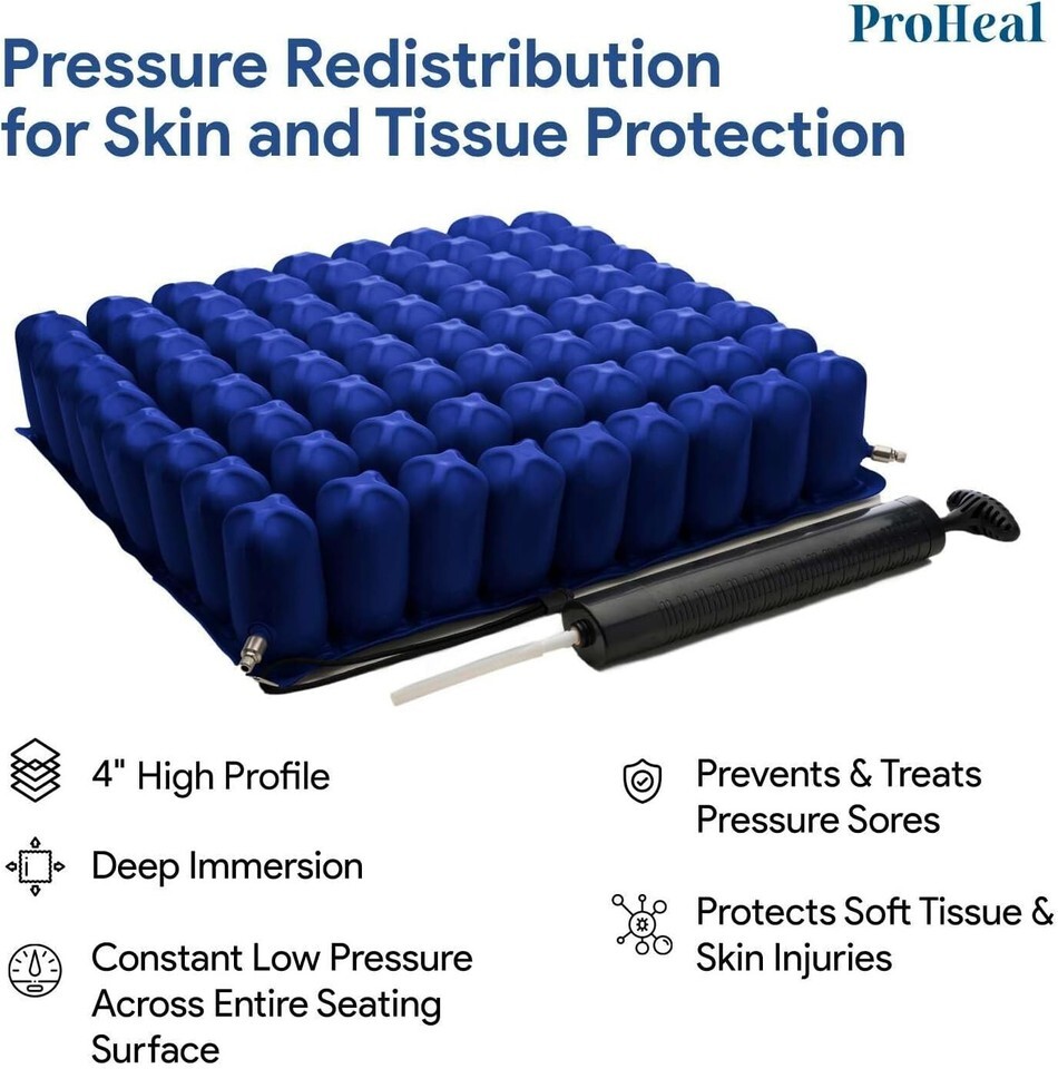 Inflatable Wheelchair Seat Air Cushion - 16" x 16" - High Profile - Pressure ...