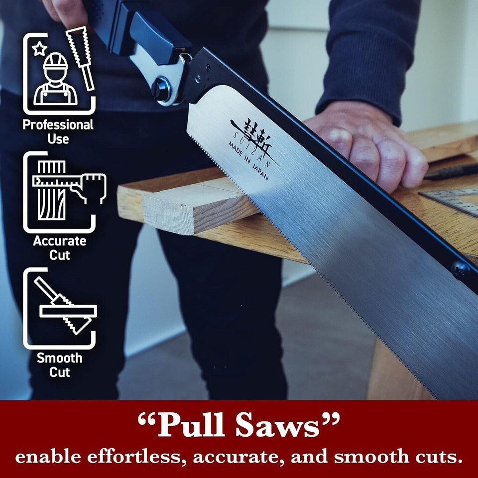 JAPANESE STYLE PULL SAW: This product is a ?Pull Saw.? Most people are used to European saws, called ?push saws,? which cuts through a pushing motion. On the other hand, Japanese saws cut materials via pulling and are called ?pull saws.? In comparison to ?push saws,? this Japanese product is lighter in weight, requires less power, and results in a cleaner edge.
